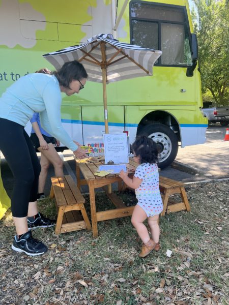 - One of our younger healthy skin champions checks out the kids table at our event in Austin.
