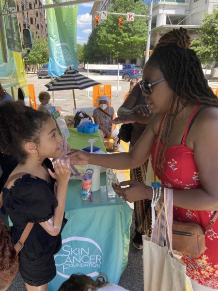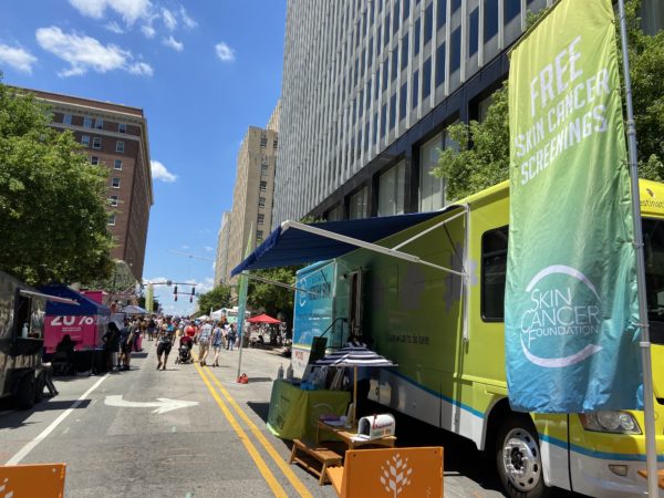 A local morning news segment in Raleigh, the City of Oaks, announced the RV’s arrival, which drew many participants to the event. Our on-the-ground team was pleased to discover that the city was hosting a food festival at the same time. Yum! Raleigh dermatologist Carol Trakimas, DO, screened 31 participants and identified seven suspected precancers, two suspected basal cell carcinomas (BCCs) and two suspected melanomas.