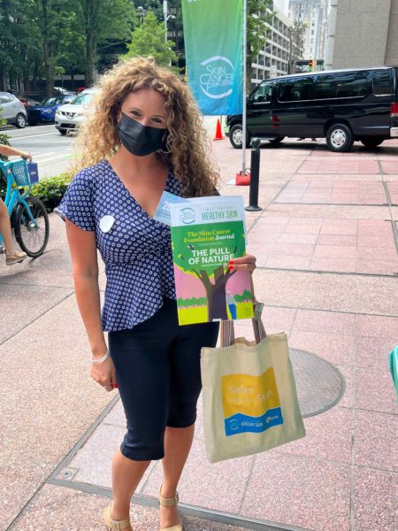 - In Atlanta, a happy participant posed with giveaways, including the 2022 Skin Cancer Foundation Journal.