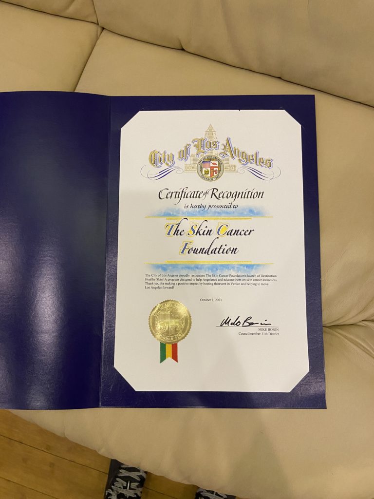 - Los Angeles City Councilman Mike Bonin presented the Foundation with a Certificate of Recognition for making a positive impact in the Venice community.