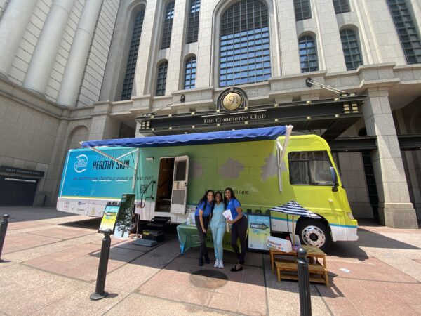 One of our most popular screening locations every year is New York City, where The Skin Cancer Foundation is based. On May 8, our fully staffed event team included Julie K. Karen, MD, Jane Yoo, MD, and Jesse M. Lewin, MD, who screened 90 participants over 7 hours. The doctors identified 18 suspected precancers and cancers. The RV was stationed at the Colgate-Palmolive building, the parent company of one of our partners, EltaMD. Many Colgate employees decided to get screened after an office email blast alerted them to our arrival.