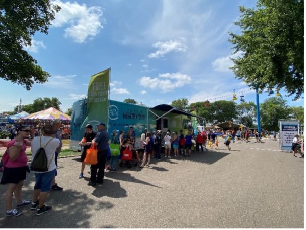 It was a packed two days at the Minnesota State Fair with over 1,000 passersby at the RV. Thanks to an alert on the Minnesota State Fair website, we had a constant flow of participants eager to receive a free skin exam! Some of our 2021 participants arrived bright and early to be among the first screened. One shared their skin cancer history with us and stressed the importance of regular skin checks and sun protection.