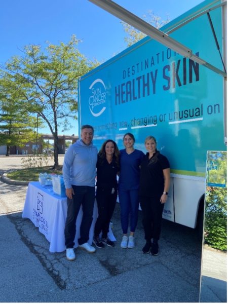 In the suburb of Glencoe, Illinois, we welcomed 180 attendees to the RV. Participants heard about us during their travel to the beach and even as they visited their dentist’s office! A woman drove 27 miles from Elmhurst just to get her skin checked, while several local Glencoe Park employees also arrived for a screening. The event led to the discovery of three suspected precancers and a suspected melanoma among the 21 skin exams performed by our dermatologist Morayo Adisa, MD.