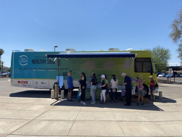 Despite 110-degree heat, our two-day event at the Tempe Library in Tempe, Arizona, was one of our busiest events so far this year! A Fox 10 News crew showed up to interview our volunteer dermatologist Dathan Hamann, MD, for a live segment on Arizona Morning. Participants on their way to the library and nearby gyms spotted the RV and made sure they got their free skin exam. On day one, Dr. Hamann spotted 32 suspected precancers, four suspected squamous cell carcinomas and ten suspected basal cell carcinomas. According to our event manager, many participants had never seen a dermatologist before or had a screening and were very appreciative of the program.