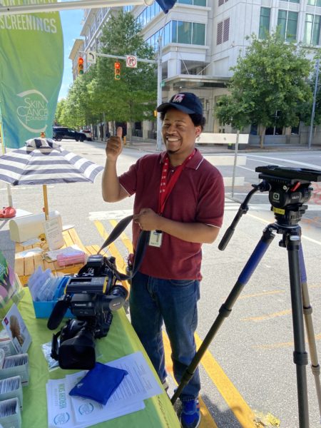 At our Dallas events we did our best to protect event workers, attendees and volunteers from the blazing sun and 100-degree heat with shade structures, sunscreen and lots of water. Despite the weather we had a successful event at the beautiful Dallas Farmers Market, where Rajiv Nijhawan, MD, volunteered. A total of 31 exams revealed two suspected precancers, a suspected squamous cell carcinoma and a suspected melanoma.