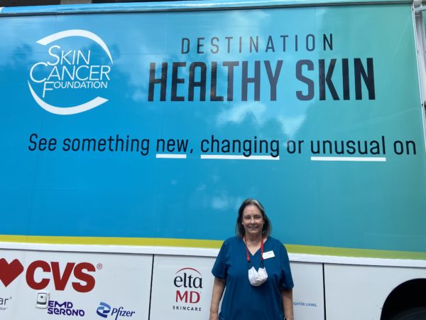 A local morning news segment in Raleigh, the City of Oaks, announced the RV’s arrival, which drew many participants to the event. Our on-the-ground team was pleased to discover that the city was hosting a food festival at the same time. Yum! Raleigh dermatologist Carol Trakimas, DO, screened 31 participants and identified seven suspected precancers, two suspected basal cell carcinomas (BCCs) and two suspected melanomas.