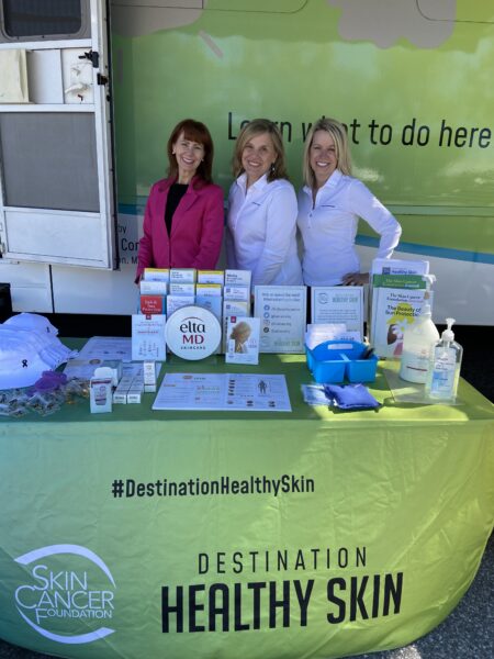 On day two, dermatologists Elise Martin, MD, and Joanne Simpson, MD, performed 17 skin checks. We made plenty of new friends as shoppers from the farmers market happened upon us, and we met one person who said our monthly newsletter encouraged them to come by. One participant even drove hours to get a screening after her roommate told her about Destination Healthy Skin. Representatives from EltaMD and BMS also visited the event to say hello and capture some footage for Instagram.