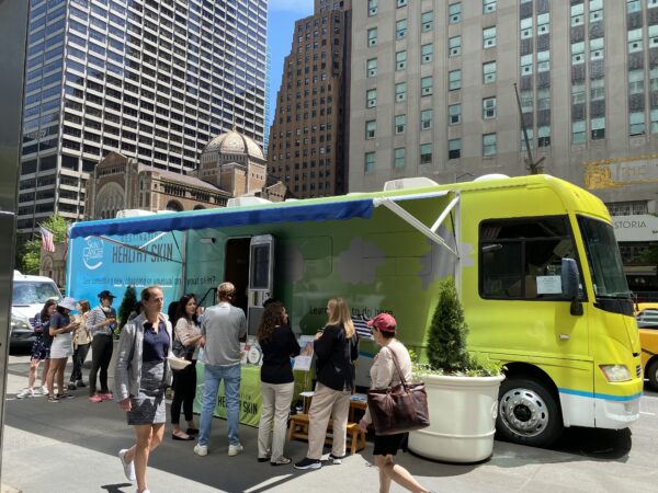 One of our most popular screening locations every year is New York City, where The Skin Cancer Foundation is based. On May 8, our fully staffed event team included Julie K. Karen, MD, Jane Yoo, MD, and Jesse M. Lewin, MD, who screened 90 participants over 7 hours. The doctors identified 18 suspected precancers and cancers. The RV was stationed at the Colgate-Palmolive building, the parent company of one of our partners, EltaMD. Many Colgate employees decided to get screened after an office email blast alerted them to our arrival.